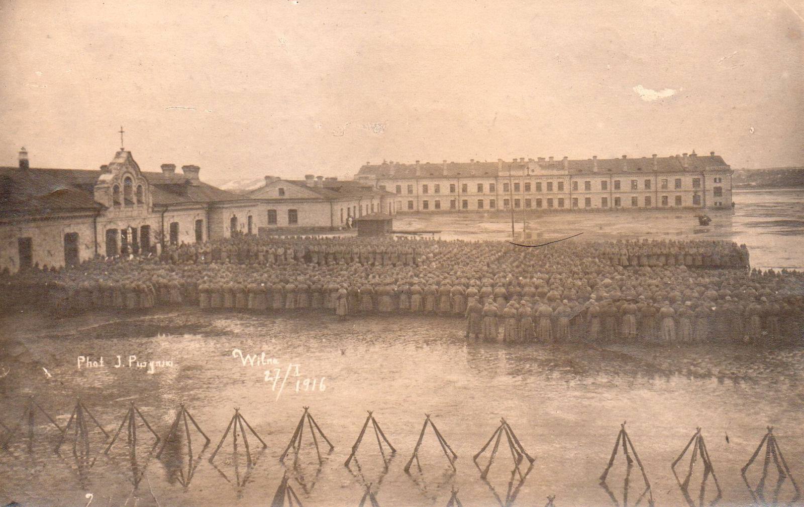 Paradas Vokietijos kaizerio garbei prie kareivinių. 1916 m.